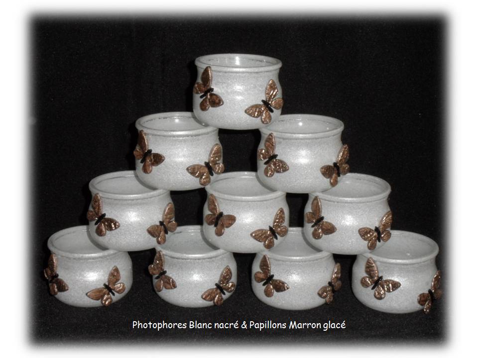 Photophores Blanc nacré & Papillons Marron glacé